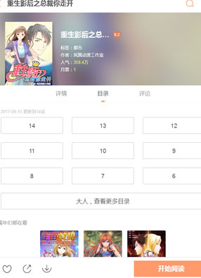 2025-08-01 21:24 开始阅读 微信阅读 简介: 《重生影后之总裁你走开》漫画简述:奥斯卡影后不幸车祸身亡,再次睁开眼睛,重生到了一个绯闻缠身的小透明身上,不仅如此,小透明前有人对她诬陷,后有经纪人如狼似虎,且看重生影后怎么在这危机四伏的娱乐圈再次夺回属于自己的荣耀!