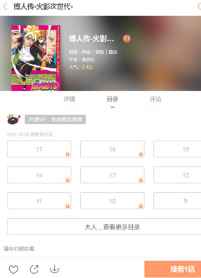 开始阅读 微信阅读 简介:《博人传》漫画简述:忍界大战结束后,鸣人也如愿当上了火影,火影的二代们也都开始成长了起来,各自有了各自的家庭和生活,肩膀上有了各自的责任。次世代的降生,让木叶村有了新的活力,鸣人也有了一子一女,家庭幸福的同时,也看着自己的儿子开始走上与自己不一样的人生路。这是围绕漩涡鸣人他们的后代-漩涡博人等人的故事…